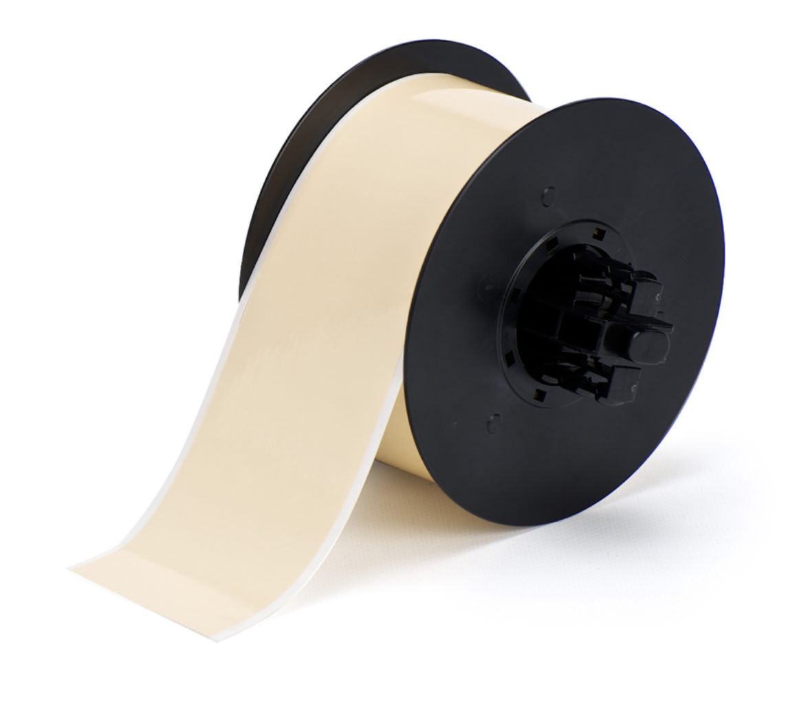 Tape^ Tape, B30 Series Low-Halogen Polyester Label Supply, Permanent Acrylic Adhesive, Material Type: Polyester, Fit, Color: Tan, Dimension: 2.25Inchx 100Feet, Application: Facility & Safety Identification; Labelling Of Stainless Steel Pipes And Surface