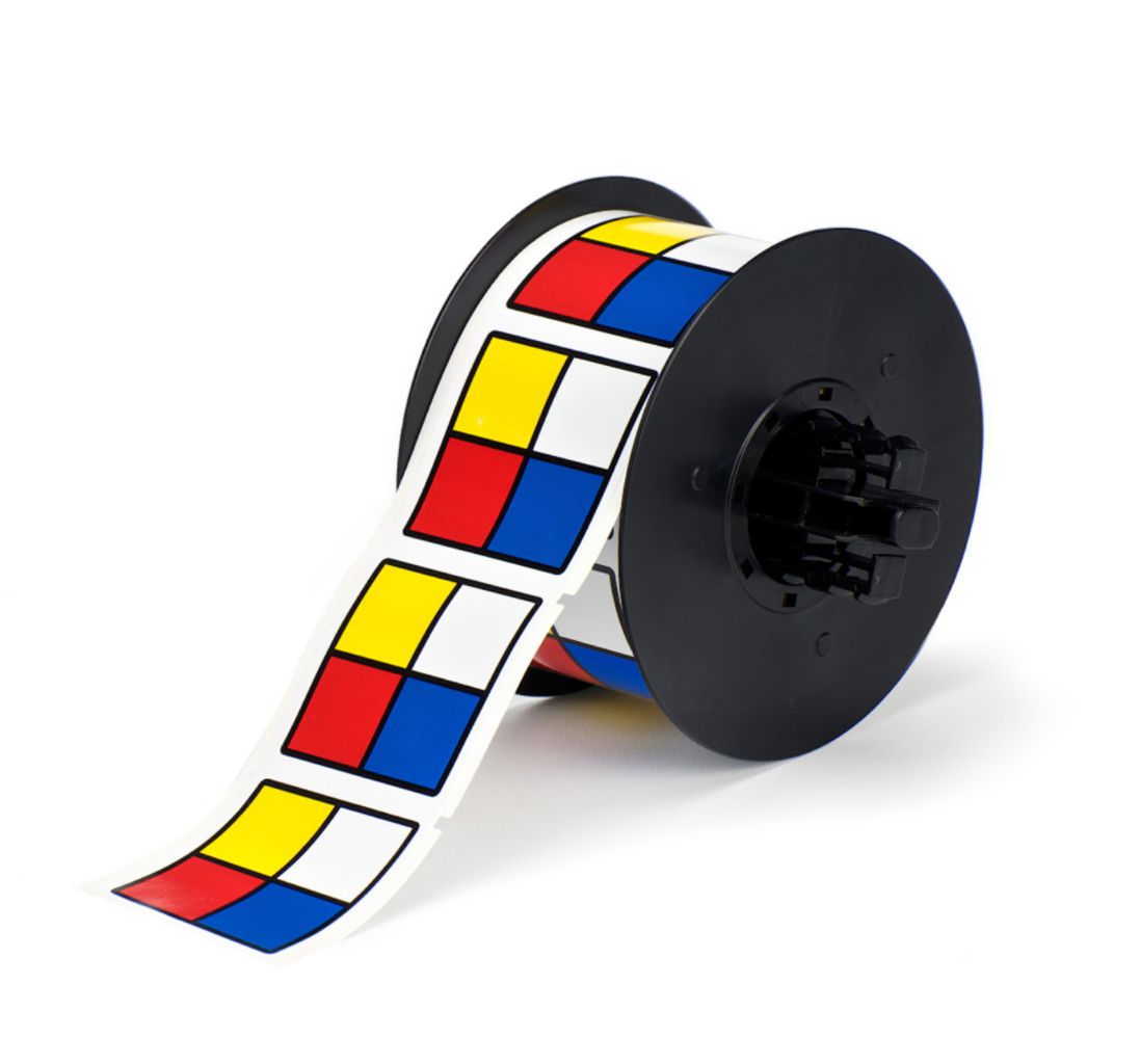 B30 B595 Nfpa Di 2.25X2.25Rl365^ Indoor/outdoor marking film. High gloss, durable, flexible, permanent cold temperature applicable pressure sensitive acrylic used for Pipemarkers, Arrow Tape, Warehouse Marking, Warning Panels, Safety Signs, Arc Flash and Visual Workplace labels.