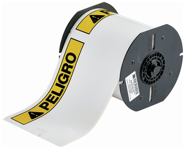Indoor or outdoor useFor use on powder coated, smooth, textured/rough, irregular, and curved surfacesLanguage: SpanishLegend: PELIGRO or PRECAUCIONVinyl labels with glossy finishColor: Red on WhiteCold temperature permanent acrylic adhesiveTemperature Range: -40° to 180°F