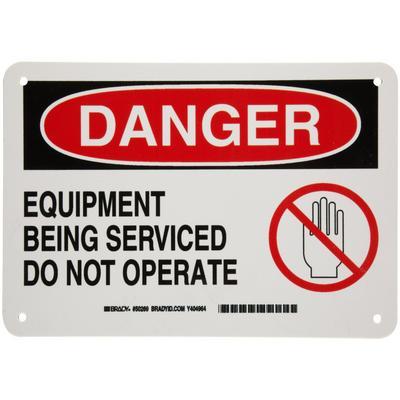 Lockout Warning Sign (English/Spanish)^ Size:7 H x 10 W. BradyTuff; Plastic. Black/Red on White.