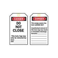 Economy Polyester Lockout Tags^ Size:5 3/4H x 3W. Economy Polyester. Black/Red on White.