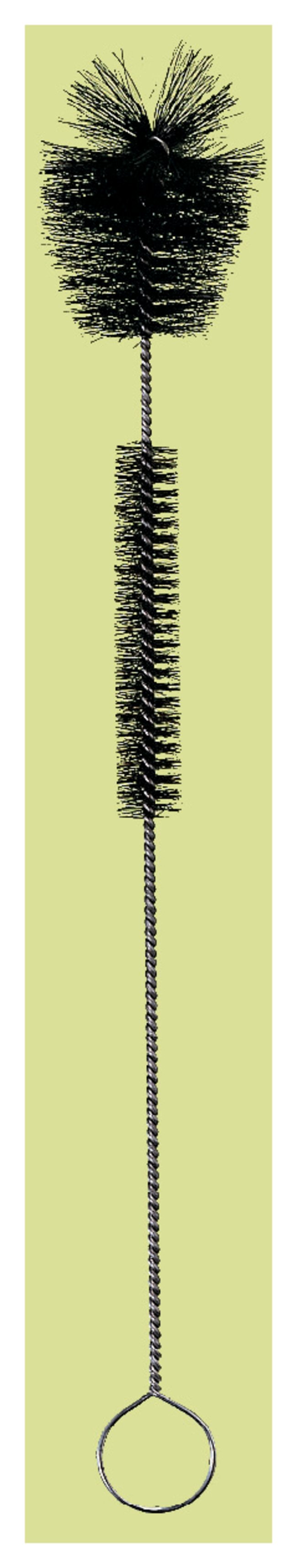Fan-style tip for cleaning Babcock bottles.Bristle portion on tip, 1.75 dia. × 2 in.L (4.4 × 5cm)Upper portion, 0.5 dia. × 3 in.L (1.3 × 7.6cm)