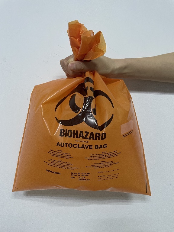 Highly resistant to tears and punctures |, 08_Certifications: | ISO 9001:2015, Sedex. |, Capacity: 11 L, Color: Orange, Biohazard printed bag, with temperature indicator, Dimensions: 356×485 mm (14×19"), Material: PP, Thickness: 50 µm/2 mil, | Sturdy, temperature-resistant bags are ideal for disposal of non-hazardous waste that must first be autoclaved. Bags can also be used for autoclaving other products. |, Bags are supplied complete with 20 cm twist tie wire closures that allow expansion of the bag and ventilation when cooling. Bags meet the requirements of the 165 g puncture inspection standard as described in ASTM D1709. |, 02_BulletPoint: | Autoclavable up to 135 ℃ (275 ℉) maximum |