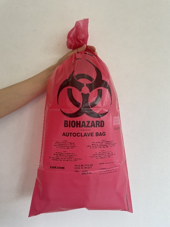 Highly resistant to tears and punctures |, 08_Certifications: | ISO 9001:2015, Sedex. |, Capacity: 1 L, Color: Red, Biohazard printed bag, with temperature indicator, Dimensions: 205×305 mm (8×12"), Material: PP, Thickness: 50 µm/2 mil, | Sturdy, temperature-resistant bags are ideal for disposal of non-hazardous waste that must first be autoclaved. Bags can also be used for autoclaving other products. |, Bags are supplied complete with 20 cm twist tie wire closures that allow expansion of the bag and ventilation when cooling. Bags meet the requirements of the 165 g puncture inspection standard as described in ASTM D1709. |, 02_BulletPoint: | Autoclavable up to 135 ℃ (275 ℉) maximum |