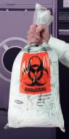 Bags are available in clear or red with proper biohazard warnings, or clear without a label. They are rated for use at 135 °C (275 °F) and come with twist ties included.