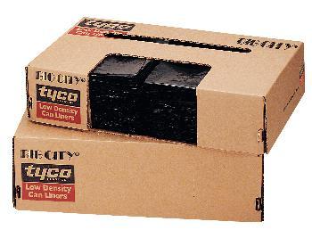 Big City* Polyethylene Liners, 2 mil^ For heavy-duty uses. Specially formulated linear low-density resins combined with recycled resins. Resins are thick in gauge and offer additional stretch. Flat folded for convenient single bag dispensing. Color: black. Dimensions: 83.8Wx101.6Lcm.