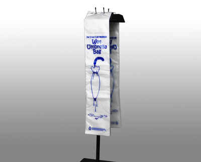 Bag^ Medium Umbrella Bag, Colour: Clear, Material: HDPE, Printed, Size: 7x24 in, Gauge (mils): 2, Recyclable, Helps keep floors dry on rainy days, Reduces potentially dangerous and costly slips and falls, Header pack has five large holes designed to accommodate many stand and hook designs