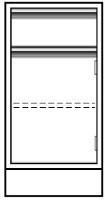Contour* Standing Height Base Cabinets, Single Door Cupboard and Drawer^ Manufactured of prime grade, cold rolled, U.S. Standard sheet steel. Phosphate-coated with a powder-coat finish. Color: light neutral. Supplied with one full-width adjustable shelf. 45.7L x 38.1W x 90.8H cm.