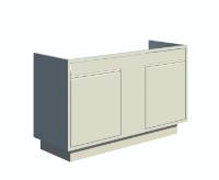 Contour* Standing Height Sink Cabinet^ Manufactured of prime grade, cold rolled, U.S. Standard sheet steel. Phosphate-coated with a baked, chemical-resistant, powder-coat finish. Color: light neutral. Cabinet has two cupboards and includes supports. 152.4L x 55.9D x 90.8H cm.