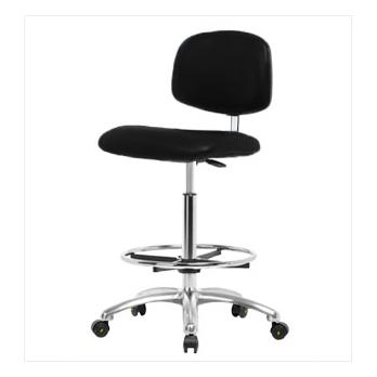 Basic ESD/Clean Room Vinyl High Bench Height Chair with Chrome Base, Chrome Foot Ring, ESD Casters, Black, Each