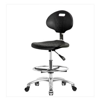 Basic Industrial Polyurethane Medium Bench Height Chair with Chrome Base, No Arms, Chrome Foot Ring, Glides, Each
