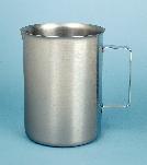Beakers, Stainless Steel^ 2839mL. O.D.: 15.4cm. Height: 17.8cm. Handle and pouring spout.