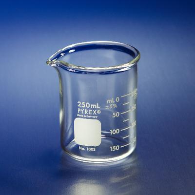PYREX* Brand Griffin Heavy-Duty Beakers, Graduated^ 600mL. Graduation range: 50-500mL. Double graduated metric scale. Designed to offer mechanical strength under harsh conditions, such as mechanized washing operations. Extra large marking spot. Meets ASTM E960 specifications.