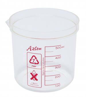 Square ratio beakers are the safe, convenient alternative to griffin style beakers. These beakers feature a vertical lip around the top of the beaker which serves two purposes: first the lip contains many spills that may occur with the rounded design of a griffin style beaker. Second, this vertical lip allows the beakers to be stacked together in sets when not in use.