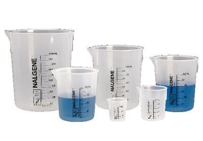 NALGENE* Polypropylene Griffin Low Form Graduated Beakers^ 100mL. Graduation range: 10-100mL. Translucent polypropylene. Stackable. Easy-to-read graduations with size and resin codes. Autoclavable and chemically resistant. Not for use on hot plate. ISO/DIS 7056.