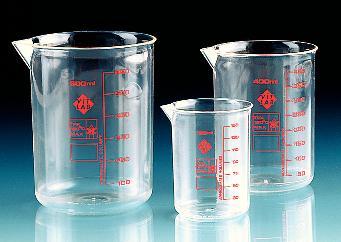 Griffin Beaker, Polymethylpentene^ Glass-transparent polymethylpentene beaker with moderately good chemical resistance with red-screened graduations. Meets the requirements of ISO 7056. Capacity: 25mL. Graduation interval: 5mL.