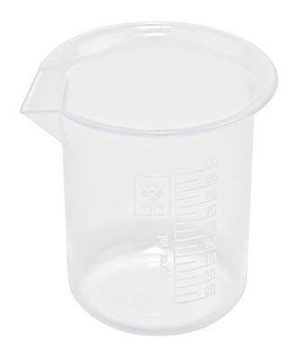 Beaker Griffin Pp 100Ml Cs48^ Autoclavable, very stable Polypropylene Griffin Style Beaker. Molded graduations in millimeters. Conform to ISO 7056. Tolerance /-10%. Subdiv. 5mL. PP is very chemically resistant and good to 135C.