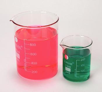 Beaker^ Borosilicate glass, ideal for heating with optimum balance between thermal resistance and mechanical resistance, controlled wall thickness at the sides, radius and bottom. Spouts for easy pouring.