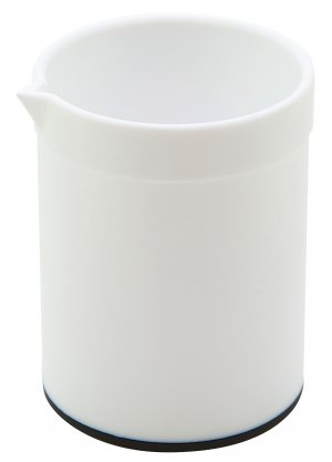 PTFE heatable beakers features the unique combination of a pure PTFE body with a specially formulated stabilized PTFE Carbon base as a single molding allowing for heating to 270°C without distortion.