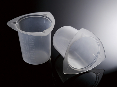 Tri-Cornered Beaker 250ml^ Tri-Cornered Beaker, Materials: Strong, medical-grade Polypropylene, three dripless pouring spouts, with good impact strength and are translucent and autoclavable, disposable and easy to clean and durable enough for reuse, with Molded Graduations, Clear, Capacity: 250 ml