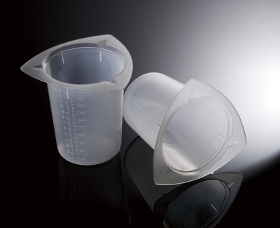 Tri-Cornered Beaker 400ml^ Tri-Cornered Beaker, Materials: Strong, medical-grade Polypropylene, three dripless pouring spouts, with good impact strength and are translucent and autoclavable, disposable and easy to clean and durable enough for reuse, with Molded Graduations, Clear, Capacity: 400 ml