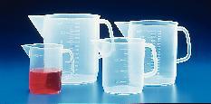 Here is the corrected text: Our graduated beakers are robust, featuring a non-drip spout and ridged thumb-grip on the handle. They are molded from autoclavable, translucent polypropylene, with a low form design for better stability. All sizes are graduated in milliliters and liters. We offer a range of capacities, including: * 1 L (34 oz.), Cat. No.: 13916-730 * 500 ml (17 oz.), Cat. No.: 13916-707 * 3 L (101.4 oz.), Cat. No.: 13916-795 * 2 L (68 oz.), Cat. No.: 13916-762 * 5 L (169 oz.), Cat. No.: 13916-820 Our graduated beakers are available in a range of graduation ranges, including: * 50 - 1000 ml * 25 - 500 ml * 100 - 3000 ml * 50 - 2000 ml * 250 - 5000 ml