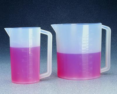 Beaker With Handle, PFA^ Rigid and translucent to allow you to see liquid levels. Feature extraordinary chemical resistance and can be used repeatedly for high-purity applications. Use them with strong oxidizing agents, acids, hydrocarbons and ketones. Molded-in handle.