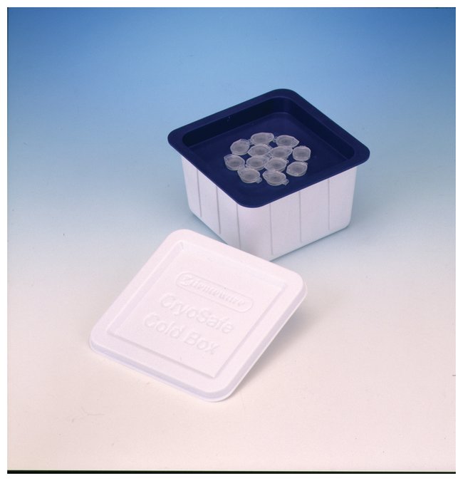 Made of molded polystyrene. Bel Art™ SP Scienceware™ Cryo-Safe™ Cold Box. Has an internal 12-place support for 1.5 ml microcentrifuge tubes..