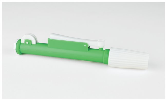 Rotate the knurled thumb wheel to aspirate liquid to the desired volumeApply light pressure to the fast release lever to rapidly dispenseRotate the thumb wheel for gradual dispensingGlass or plastic pipettes are easily inserted into a unique collar with stabilizing fingers for a secure holdSizes are color coded by size for easy identificationCan be disassembled for cleaning