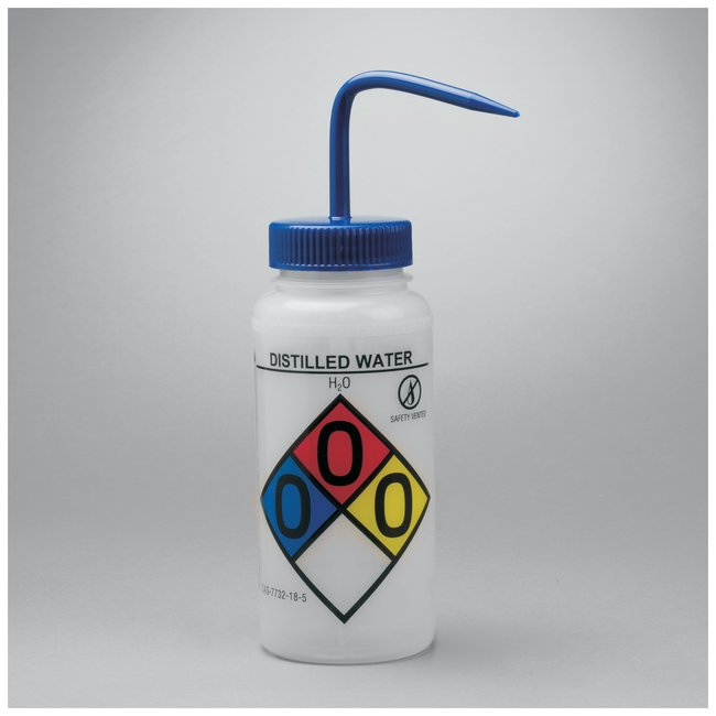Specially designed valve prevents pressure build-up, which eliminates potentially dangerous chemical drips; allows dispensing of wash bottle in upright or inverted position.