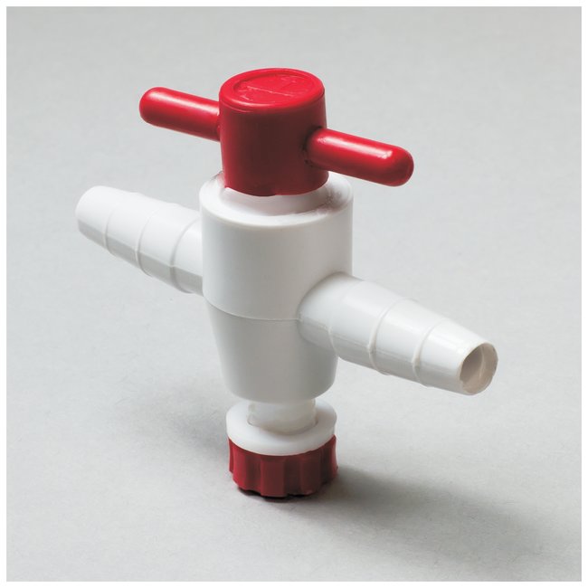 With a removable, leak-proof plug made of chemical-resistant, non-stick PTFE with barbed tubulations that accept 1/4 to 3/8 in. I.D. tubing