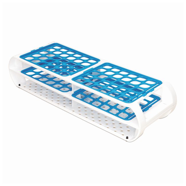 Innovative, split-frame racks hold up to two different sized tubes in the same rack, allowing students to quickly switch grids to hold other sizes as needed.10mm to 30mm diameter test tubes fit in five color-coded grid insertsThree-tier rack holds tubes securely in placeRubber feet keep racks from sliding on lab desk and provide secure stacking while in storageChemical resistant polyoxymethylene plastic rack frame and grids can be cleaned with mild detergent, ethanol or isopropyl alcohol; autoclaved at 121°C (250°F)More compact and less expensive than multiple racksOrder InfoEach rack includes a set of grids in one size; grid sets in alternate sizes can be purchased separately (See Cat. Nos. S04600 through -604). Rack frame overall dimensions: 12 1/2 × 4 3/8 × 2 5/8 in. (31.8L × 11.1W × 6.7cmH).