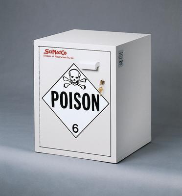 Benchtop Poison Cabinet^ With Fixed-Position Shelf That Is One-Half The Depth Of The Cabinet'S Interior. Door Features A Lock For Safety, An Easy-To-Grip T-Handle And A Strong, Continuous Piano-Type Door Hinge. Liquid-Tight Trough Retains Hazardous Spills. Non-Reactive Wood. 25.4Cm Poison Label.
