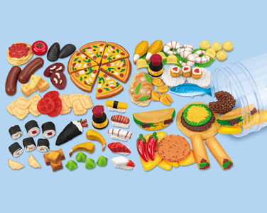Here’s a great way to introduce children to cultures from around the world! Our giant play food set includes 100 rugged plastic pieces representing cuisine from Japan, Italy, China & Mexico—from sushi rolls & Italian sausage to steamed dumplings & tortilla chips. Comes in a storage tub with an illustrated guide identifying each type of food. Pizza is 6 1/2".