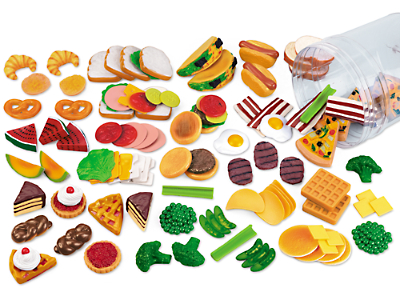 From pizza complete with toppings to nutritious sandwich fixings, our huge assortment of play food is a feast for the imagination! We’ve included lots of deliciously realistic play food for breakfast, lunch, dinner…even snacks and desserts! 100 plastic pieces come in a tub. Each taco is 4 1/4".