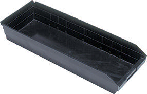 Conductive Shelf Bin 23-5/8In X 8-3/8In X 4In^ Conductive Shelf Bin, Material: Molded Carbon-Filled Black Copolymer Polypropylene, Stackable, Surface Resistivity Of Less Than 10 5 Ohms/Sq. In, Protects From Electromagnetic Fields. Resists Static Buildup, Dimension: 23-5/8In X 8-3/8In X 4I