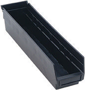 Conductive Shelf Bin 17-7/8X 4-1/8X4 In^ Conductive Shelf Bin, Easy Access To Stored Items With Hopper Front Bin And Label Holder Provides Fast Identification, Outer Dimension: 17-7/8X 4-1/8X4 In, The Conductive Material Provides A Barier Which These Fields And Cannot Penetrate And Prevent