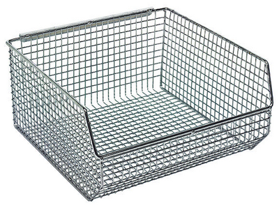 Wire Mesh Bin 10-3/4Indx 11In X 5In^ Wire Mesh Bin, With 3/8In X 3/8In Chrome Wire Mesh Construction, Nickel-Chrome Finish, Stack Bins, Or Hang From Any Louvered Panel Or Bin Rail Designed For Quantum Plastic Bins, Great For Hospital Supplies, Dimension: 10-3/4In X 11In X 5I