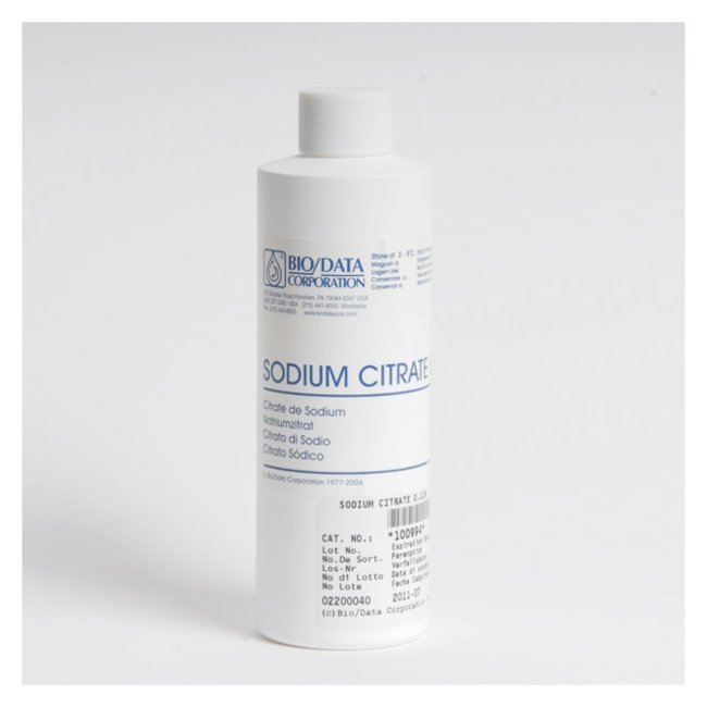 Sodium Citrate, Works as an anticoagulant for platelet aggregation blood sample collection, Each
