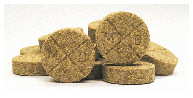 Highly palatable, nutritionally complete, grain-based, bacon flavored tablets5g scored tablet offers accurate and flexible dosingEasy to administer—place on cage floor for easy accessTablets are formulated to meet daily nutritional and medication requirements of rodentsLess risk of dehydration compared to using medicated waterAverage dose: 5g tablet/20g of body weight (mouse), 5g tablet/20 g of body weight (rat)Dia. × H: 1 × 0.25 in. (2.5 × 0.6cm)Ingredients: Ground Corn, Banana Flakes, Dehulled Soybean Meal, Corn Gluten Meal, Ground Wheat, Corn Gluten Feed, Fish Meal, Dehydrated Alfalfa Meal, Casein, Dried Whey, Sucrose, Fructose, Dextrose, Dried Beet Pulp, Soybean Oil, Porcine Animal Fat (preserved with BHA), Dried Brewers Yeast, Mineral Mix, Vitamin Mix, Magnesium Stearate, Calcium Silicate, Bacon Flavor, DL-Methionine, Choline Chloride, Sodium Propionate, Ascorbic Acid, Kaoli