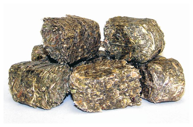 100% sun-cured timothy haySteam pressed (no binders added)Nutritionally assayedContaminant screenedSize: 3.18 × 1.90cm (1.25 × 0.75 in.)8.63kg (19 lb.)/Box
