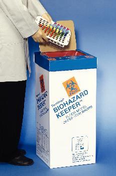 Terminal* Biohazard Keeper^ An easy and economical way to collect and dispose of lab waste. Sturdy paperboard construction offers strength, and the 2 mil red plastic liner provides leak-resistance. Unique Reclose-A/Remove-A-Lid* allows you to reclose the container during use to reduce odor and mess.