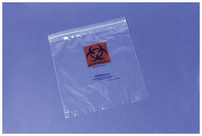 Access pocket without opening sealed pouchTwo-pouch bags constructed of polyethylene2mil-thick zipper-seal pouch holds specimen containerSeparate 1.5mil-thick pocket for papers Each bag printed with biohazard graphics in orange and blue