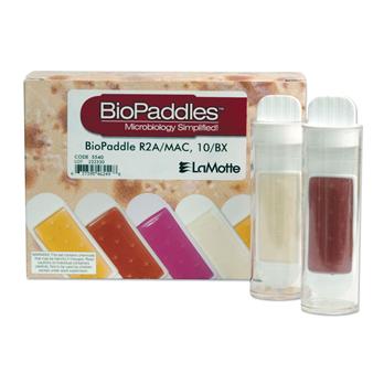 Additional Info BioPaddles® are flexible dual-agar paddles each containing microbe-specific media enclosed in a sterile vial. Identify and quantify microbes in air, soil, water, or any surface! BioPaddles do not require any other testing equipment – only a magnifier and warm place (35°C or incubator) are needed.Liquid Sampling: Remove the paddle from the vial and fill the vial (approximately 40ml) with the sample. Insert the paddle, swirl for 15 seconds. Pour out the liquid, replace the paddle in the vial, and incubate.Surface Sampling: Remove the paddle from the vial and gently touch each paddle media surface to the sample surface twice per side. Replace paddle in the vial and incubate.Air Sampling: Remove the paddle from the vial. Invert and mount the circular cap into the vial, exposing the agar covered paddle. Expose for 15 minutes. Replace the paddle in the vial and incubate.All BioPaddles® products come with a free app! LaMotte BioPaddles Colony ID™ App lets users compare colony examples on BioPaddle agar types from 5 microhabitats (air, water, soil, surface and food). Also contains information regarding organisms, microbiological techniques, and more!View Colony ID lite app in iTunes View Colony ID app in iTunes You can download the App Tutorials in the Additional Info tab.BioPaddles® Products – all packaged 10 paddles per box. Includes general instructions and provides access to detailed Technical Documents for each paddle type.Thomas No. C989K70 (Nutrient) For culture of non-fastidious bacteria.Thomas No. C989K71 (Sabouraud Dextrose) For selective cultivation of fungi (yeasts and molds)Thomas No. C989K72 (Tryptic Soy/Rose Bengal) For cultivation of a wide variety of microorganisms (TSA) and selective isolation of yeasts and molds (RB).Thomas No. C989K73 (Nutrient-TTC/MacConkey)TTC. For field sampling cultivation and enumeration of coliform bacteria total coliform count (TCC). Gram (-) bacterial colonies appear as red dots. Gram ( ) bacteria are usually inhibited.MAC. Medium gives improved differentiation between coliforms and nonlactose fermenting organisms. Gram ( ) cocci are usually inhibited. BioPaddle Instruction CardColony ID App TutorialColony ID lite App TutorialBioPaddles®