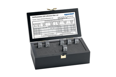 BioPhotometer* D30 Reference Filter Set^ BioPhotometer* D30 Reference Filter Set, filter set for verifying photometric accuracy and wavelength systematic error (according to NIST*), Contains: 6 filters (1 blank filter, 2 filters for checking UV/Vis wavele
