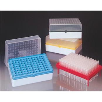 Microtiter format rack and tube systemResistant to most research chemicalsAutoclavable up to 100 timesCan be stored in temperatures as low as -80°CHolds tubes in an 8 x 12 formatIdeal for all PCR applications: EIA, RIA, cell harvesting, etc.All components are made of the highest quality polypropylene to assure low protein binding. Rack cover has an alphanumeric numbering system for identifying each tube and is supplied with a removable, 96-place ID card for recording sample location. Grids are available in blue, green, red and yellow for color coding of samples. A support at each corner allows grids to stand on the lab bench, ice bath, etc. The grids are also alphanumerically labeled. Autoclavable, polypropylene tubes are available in individual or 8-strip designs. Tubes have gross volumes of 1.4 mL and a volume of 1.1 mL when a cap is used. Polyethylene caps available in 8-strip caps.