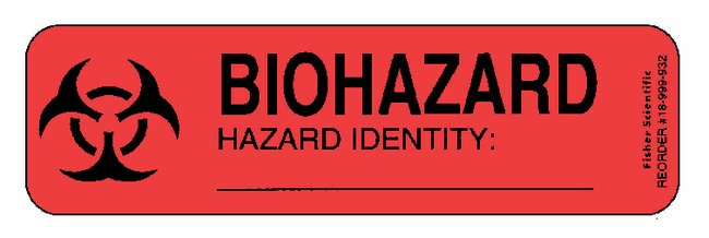 Blank Writable “Biohazard Identity” Labels, Bright red fluorescent labels display the universal biohazard symbol for easy identification, Each