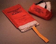 Fire Blanket^ Washable, lightweight, woven fiberglass. Adequately sized to wrap a fire victim. Sewn-on grommets allow for hanging during cleaning process. Complete with red herculite pouch for wall hanging. Velcro* pull tab on bottom releases 1.5x1.8m fiberglass blanket.
