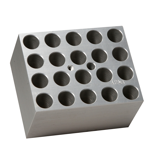 Block holds twenty 12mm or 13mm test tubes for Benchmark Digital Dry Bath (BSH1001, BSH1002, BSH1004). Block cavities are precision machined to match the conical shape of the tube size, providing unsurpassed temperature uniformity. Block size: 3 x 3.75 x 2 inches (7.6 x 9.5 x 5cm). Capacity: 20 test tubes. Tube size: 12mm to 13mm. Material: high grade aluminum. Sold individually. Benchmark Scientific #: BSW13.
