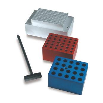 Manufactured from anodised aluminium, Techne has the widest choice of interchangeable block inserts of any manufacturer. This allows Techne Dri-Block® heaters to accommodate the widest variety of microtubes, test tubes, cups, plates, cuvettes and vials on the market, resulting in the most flexible Dri-Block® heater range available. Techne Dri-Block® inserts are either single-width to accommodate a wide variety of tubes and vials, double-width to accommodate microtitre and PCR plates or triple width to accommodate select consumables. Most blocks have a separate hole to accommodate a thermometer if required. Techne® also offer a half-width plastic spacer, commonly used in the Techne® FSC496D Sample Concentrator. Wide choice of blocks For use with Techne® Dri-Block® heaters, anodised aluminium alloy blocks provide excellent thermal conductivity. Most blocks have a separate hole to accommodate a thermometer if required. Techne® Dri-Block® heaters can accommodate block inserts in any combination (size-permitting). Depending on the combination of blocks selected, plastic spacers can be employed to fill a half-width recess, ensuring optimal thermal performance. A close fitting of sample tubes ensures efficient heat transfer. The new heater design, temperature sensor and updated circuitry provide exceptionally high thermal temperature control uniformity. Block extraction tool When removing aluminium blocks from the Techne® Dri-Block® heater, the process is made easier with a block extraction tool, especially if the blocks still contain some residual heat. Most blocks contain a screw-thread to facilitate quick and simple removal with the block extraction Tool. Techne® Dri-Block® heaters are supplied complete with a block extraction tool but without aluminium blocks, which are ordered separately. In some cases, at additional cost, bespoke blocks can be manufactured, please contact Techne for details. For use with Techne® block heaters. Manufactured from anodised aluminium, most blocks have a separate hole to accommodate a thermometer if required. Dimentions - Half width blocks have dimensions (D x W x H) 95 x 37 x 50mm. - Single width blocks have dimensions (D x W x H) 95 x 75 x 50mm. - Double width blocks have dimensions (D x W x H) 95 x 150 x 61mm. - Triple width blocks have dimensions (D x W x H) 95 x 225 x 50mm.